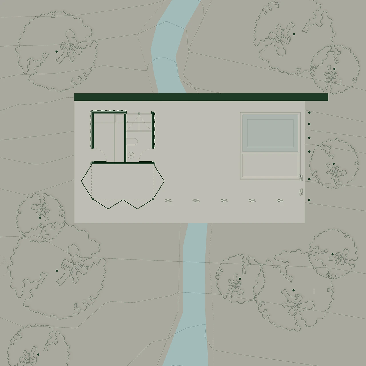 The architectural volume of Jungle Gym consists of two main horizontal planes. The first of these planes appears to float above the ground, minimizing contact with the terrain and thus reducing its environmental impact. This design decision allows the structure to harmoniously merge with the landscape, preserving the natural beauty of the site. The second plane provides necessary shade, protecting the program’s functions from natural elements and framing the surrounding landscape, creating a harmonious fusion between the built and natural environments.