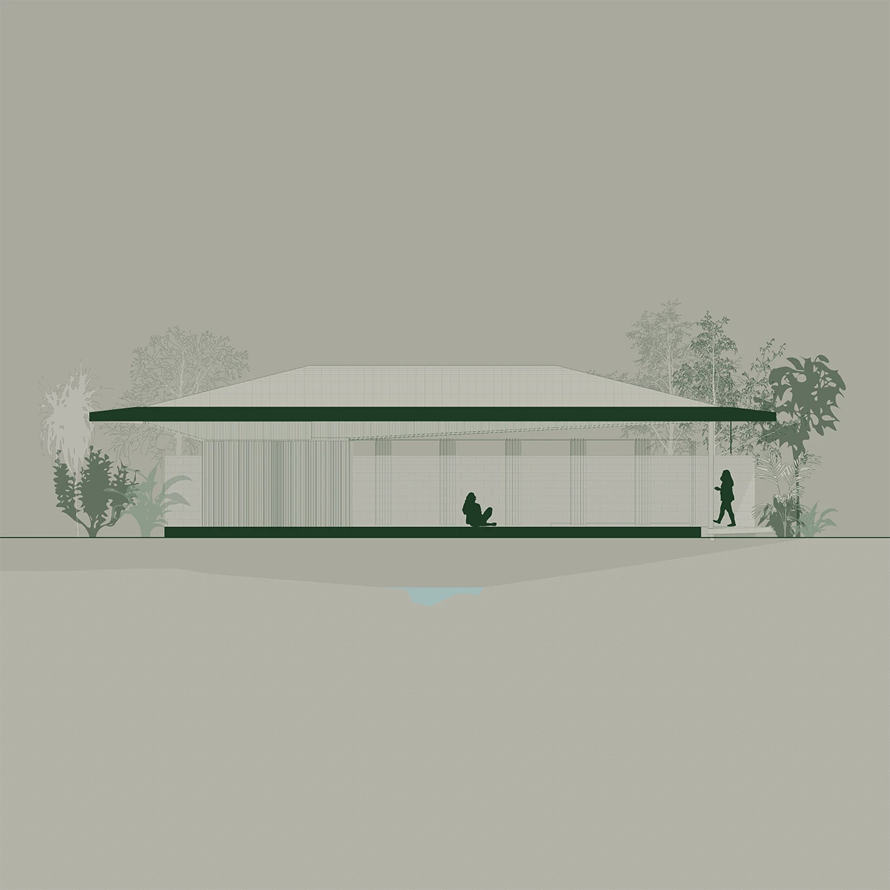 Integrated into a lush tropical environment, Jungle Gym is designed as an open platform immersed in the abundant vegetation. This space serves as a shaded refuge, encouraging introspection and promoting both physical and spiritual wellbeing. Its design responds to these needs through a simple and elegant architectural gesture that seamlessly blends with the natural surroundings.