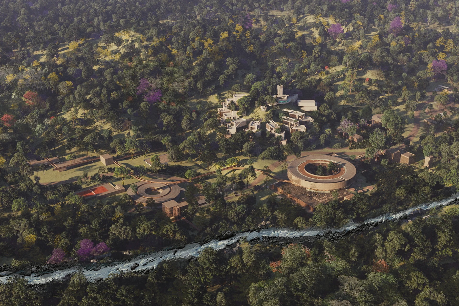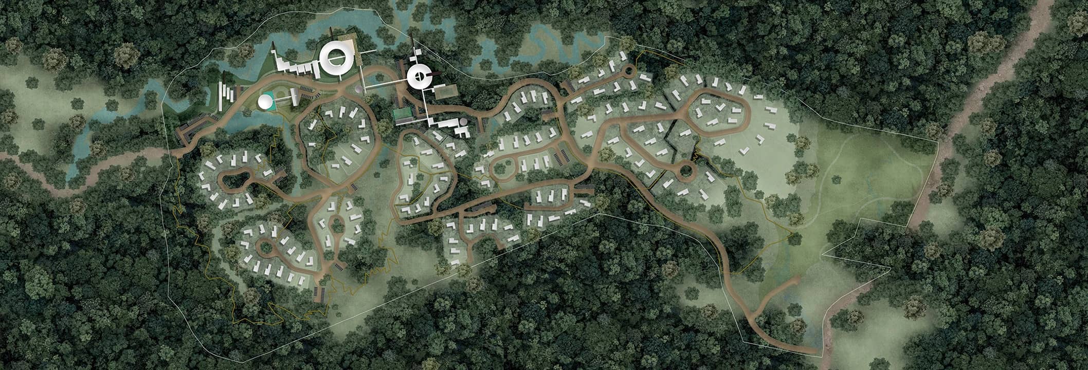 Water management is a key element of the proposal: natural ponds and wetlands serve as systems for rainwater collection and treatment, supporting irrigation, groundwater recharge, and wildlife habitats. The architectural vision of Shift draws inspiration from tropical vernacular life respecting the environment while reinterpreting it through a contemporary and forward-thinking lens. The use of organic materials, open views, and the seamless integration of nature into communal spaces embody a conscious architecture that nurtures the connection between people and their surroundings.
